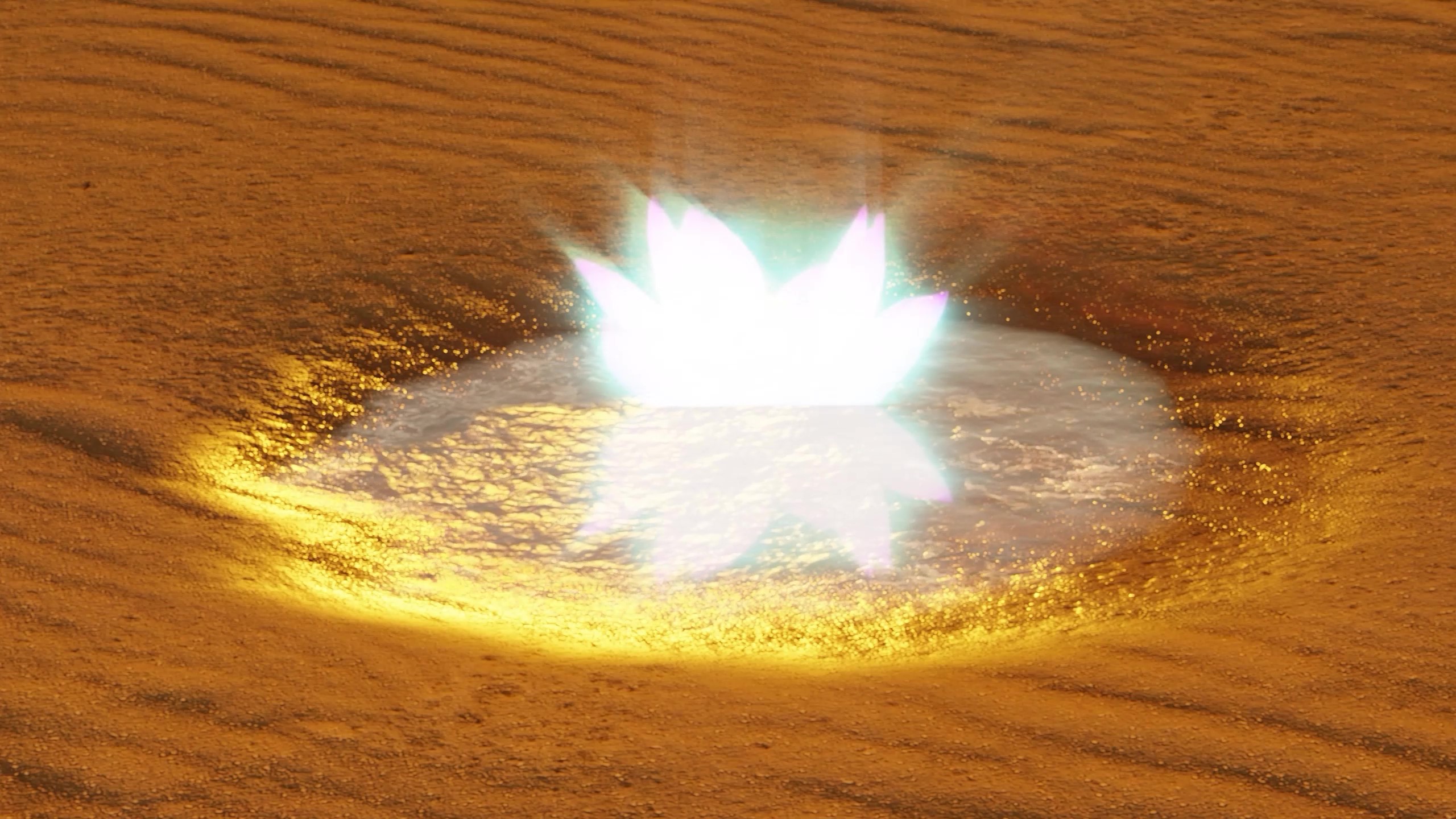 En este mundo árido y despojado, la mirada atraviesa la desolación hasta encontrar las últimas flores de loto, que actúan como terminales místicas liberando su energía vital hacia el cosmos.