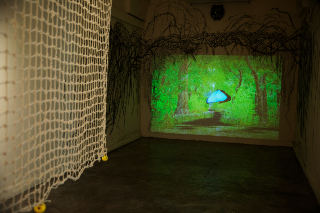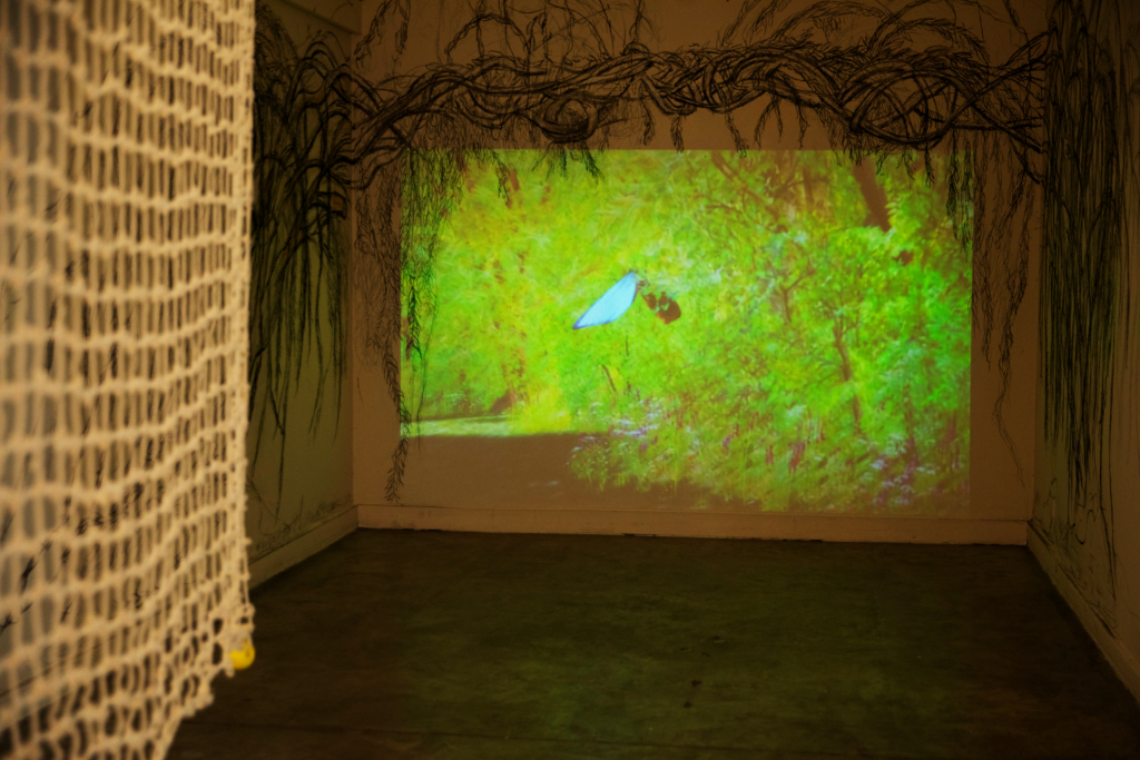 O que a correnteza carrega consigo? Quantas coisas estão armazenadas no sedimento? Um rio é muitas coisas: ele reúne memórias, afetos e imaginários, mas também reivindicações. Seu curso pode ser um limite, um território comum, um espaço ecossocial, um corpo biológico ou um sujeito de direito. O rio é seca e enchente. Suas correntezas, poças e meandros imprimem uma identidade particular àqueles que o habitam. Esta exposição reúne as diversas relações que três artistas argentinos construíram com os rios de seus territórios. Bacias hidrográficas que, ao longo do tempo, foram modificadas pela ação humana e hoje estão ameaçadas por uma lógica que entende a água apenas como um recurso. Lo que arrastra la corriente exibe as obras de María Daud, de Santiago del Estero; Agustín Míguez, de Santa Fé; e Inés Tillous, de Córdoba, artistas que participaram do programa Híbrida laboratorio (in)disciplinario. Suas obras propõem três maneiras de se conectar com os rios. Evocando o mito e a metamorfose das borboletas, Míguez usa animação em 3D para dar ao litoral um caráter mágico; seu vídeo se expande na parede por meio de desenhos, reforçando a ideia de mito e fantasia. Daud estabelece uma relação afetiva com o rio que a viu crescer: em suas obras, seu corpo e o de suas filhas incorporam o constante fluxo geracional. Tillous, por outro lado, constrói um vínculo político-afetivo no qual o rio aparece como um sujeito político, modificado em nome do extrativismo. Atravessando o olhar colonial que reduziu nossas bacias hidrográficas a resíduos, extração ou fronteira, essas obras nos lembram da urgência de ouvir os rios e reconhecer sua importância simbólica, cultural, política e ecológica.